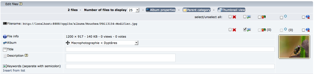 Note: If the first method is used and the image later deleted, the thumbnail will also be deleted and the default Coppermine thumbnails will be displayed, instead.